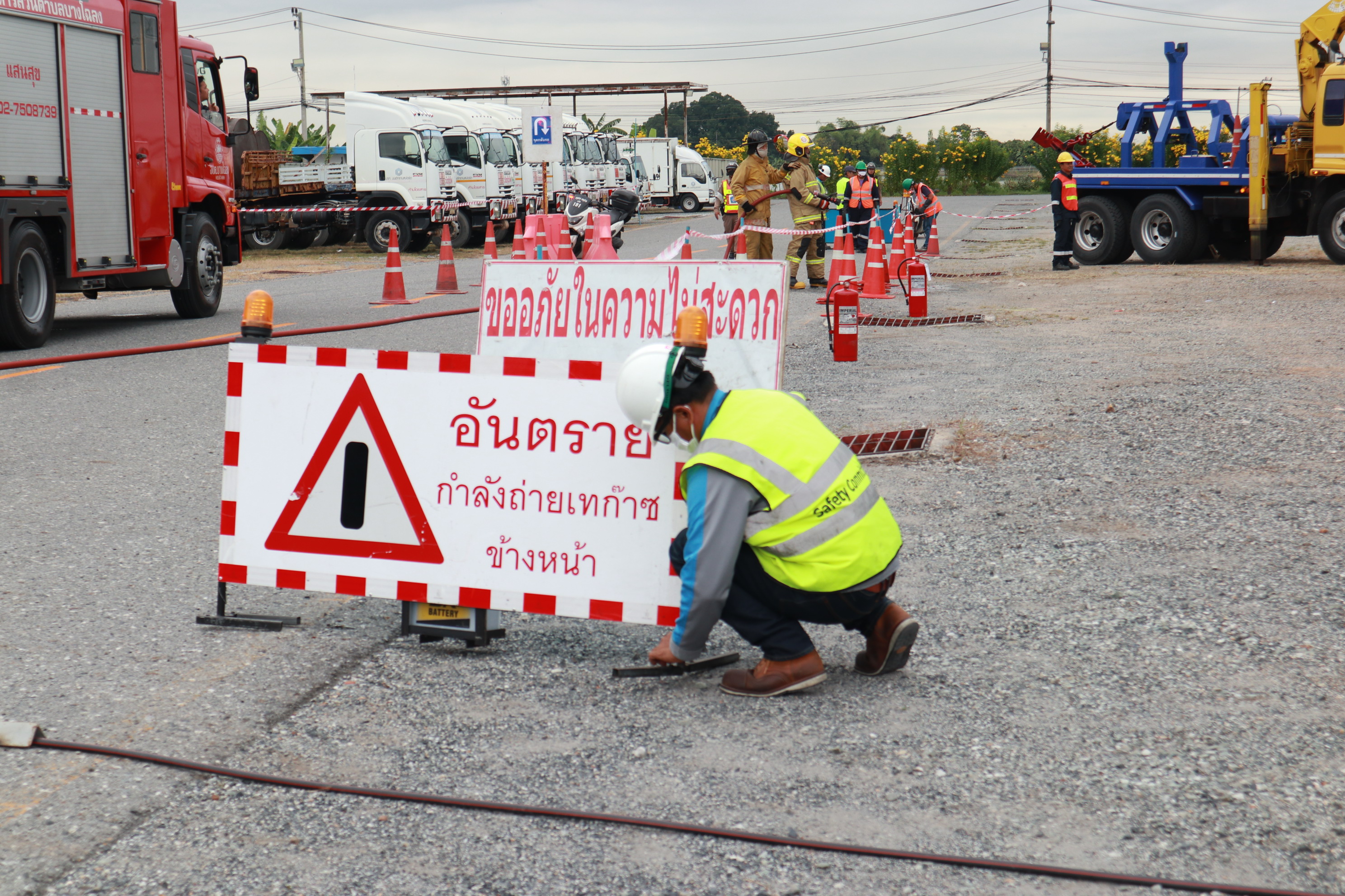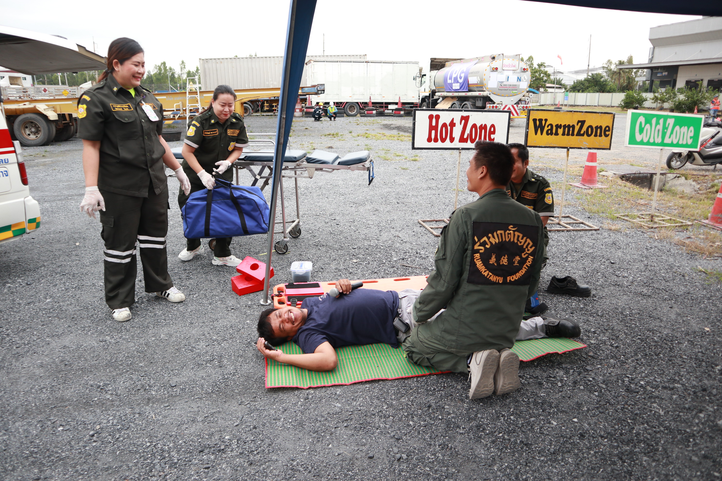 The drill was carried out over a period of two consecutive days, with participation from employees across all departments. The activity was further supported by external agencies, including fire response teams, local administrative organizations, rescue units, and safety authorities. These agencies jointly simulated various levels of emergency situations—Hot Zone, Warm Zone, and Cool Zone—in alignment with the Company’s safety operation guidelines. In addition, the Company was honored to have Mr. Manas Siriler, who served as the guest instructor for the course “Emergency Team and Emergency Response Management,” providing valuable knowledge and correct practices for all participants.
